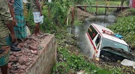 নোয়াখালীর সোনাইমুড়ীতে একটি লাশবাহী অ্যাম্বুলেন্স নিয়ন্ত্রণ হারিয়ে খালে পড়ে গেছে। তবে এতে হতাহতের কোনো ঘটনা ঘটেনি। রোববার (৭ সেপ্টেম্বর) ভোররাতের দিকে উপজেলার চাষিরহাট ইউনিয়নের সোনাইমুড়ী থেকে কুমিল্লা আঞ্চলিক মহাসড়কের চাষিরহাট বাজার সংলগ্ন কচুয়া কান্দি রাস্তার মাথা এলাকায় এ দুর্ঘটনা ঘটে। স্থানীয় সূত্রে জানা যায়, জেলা শহর মাইজদী থেকে ভোররাতের দিকে একটি লাশবাহী অ্যাম্বুলেন্স ঢাকার উদ্দেশ্যে রওয়ানা দেয়। যাত্রা পথে গাড়িটি সোনাইমুড়ী থেকে কুমিল্লা আঞ্চলিক মহাসড়কের চাষিরহাট বাজার সংলগ্ন কচুয়া কান্দি রাস্তার মাথা এলাকায় পৌঁছালে নিয়ন্ত্রণ হারিয়ে সড়কের পাশে খালে পড়ে যায়। পরে মরদেহের সঙ্গে থাকা স্বজনেরা স্থানীয়দের সহায়তায় অন্য গাড়িতে করে লাশ নিয়ে ঢাকা চলে যায়। চন্দ্রগঞ্জ থানার ভারপ্রাপ্ত কর্মকর্তা (ওসি) মোবারক হোসেন ভূঁইয়া বলেন, চালকের চোখে ঘুম থাকায় এ ঘটনা ঘটে। খবর পেয়ে সোমবার সকালের দিকে অ্যাম্বুলেন্সটি পুলিশ উদ্ধার করে থানায় নিয়ে আসে। লিখিত কোন অভিযোগ থাকলে আইনগত ব্যবস্থা নেওয়া হবে।